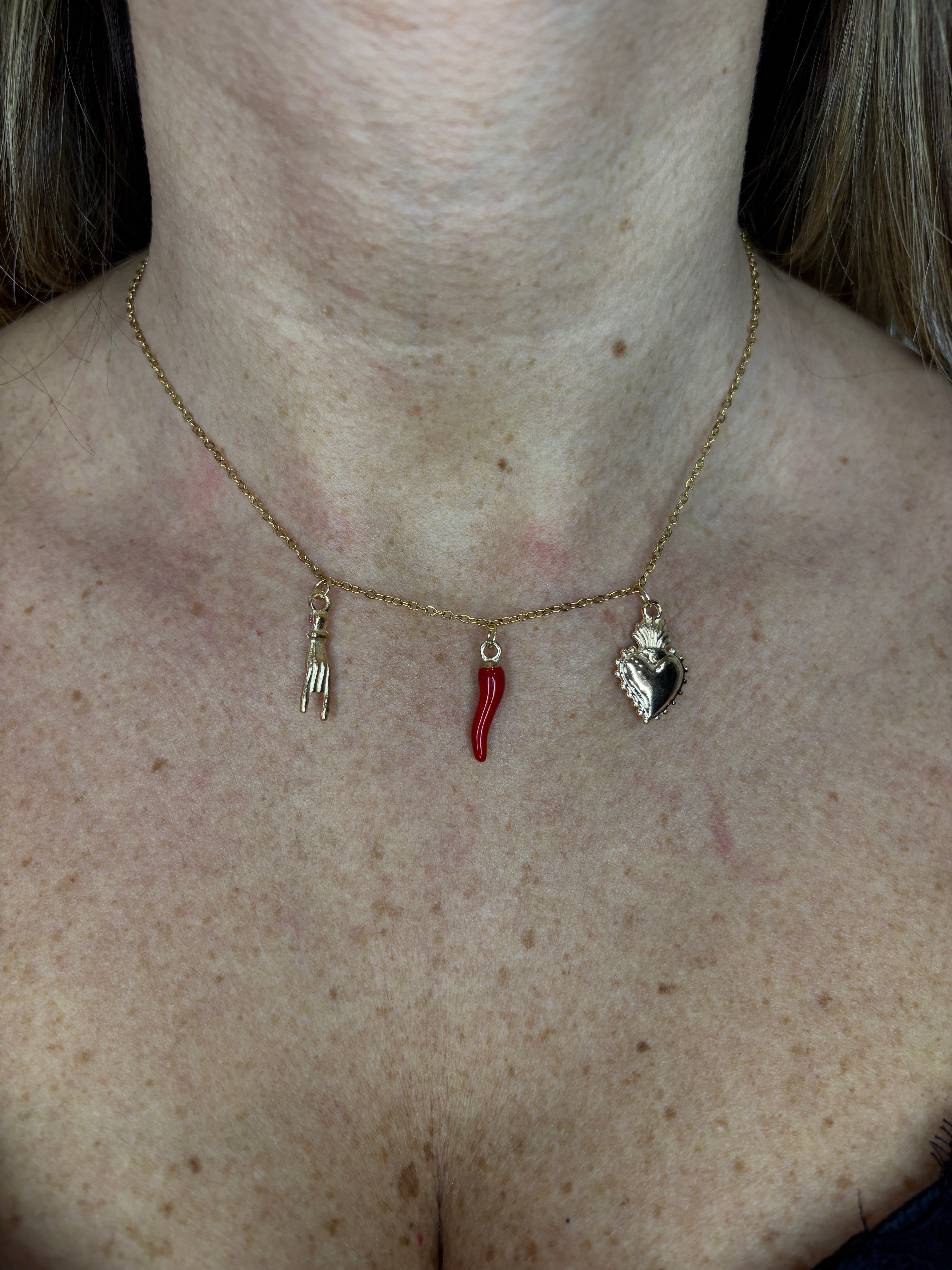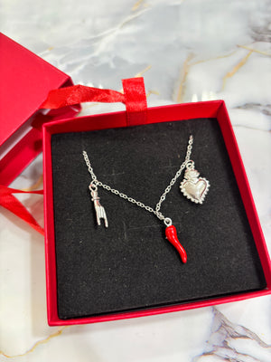 Collana in acciaio inossidabile con tre charm